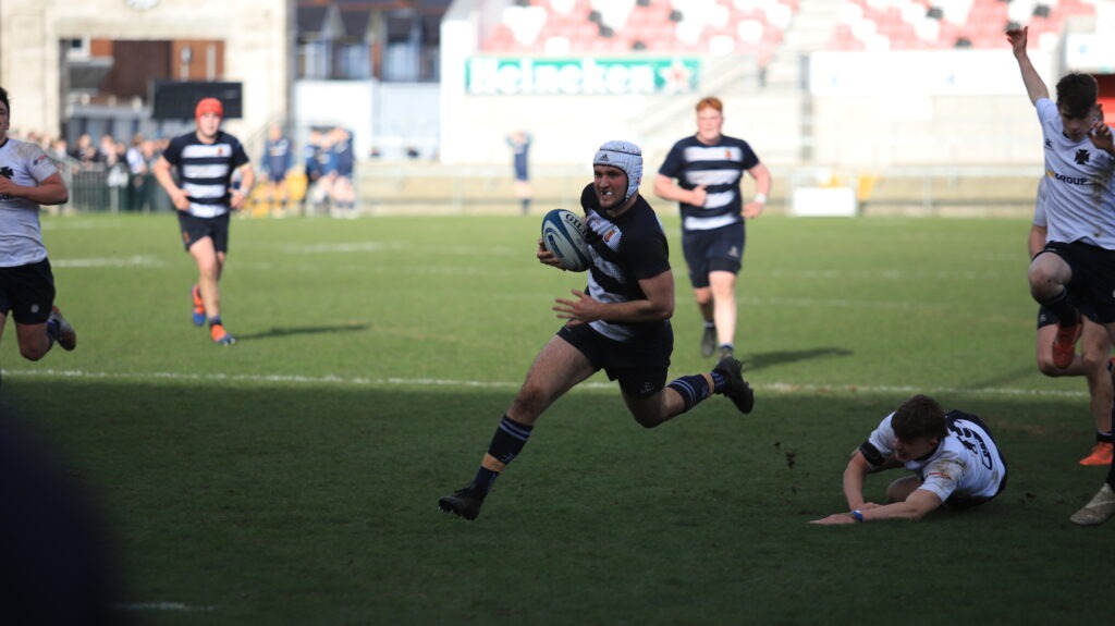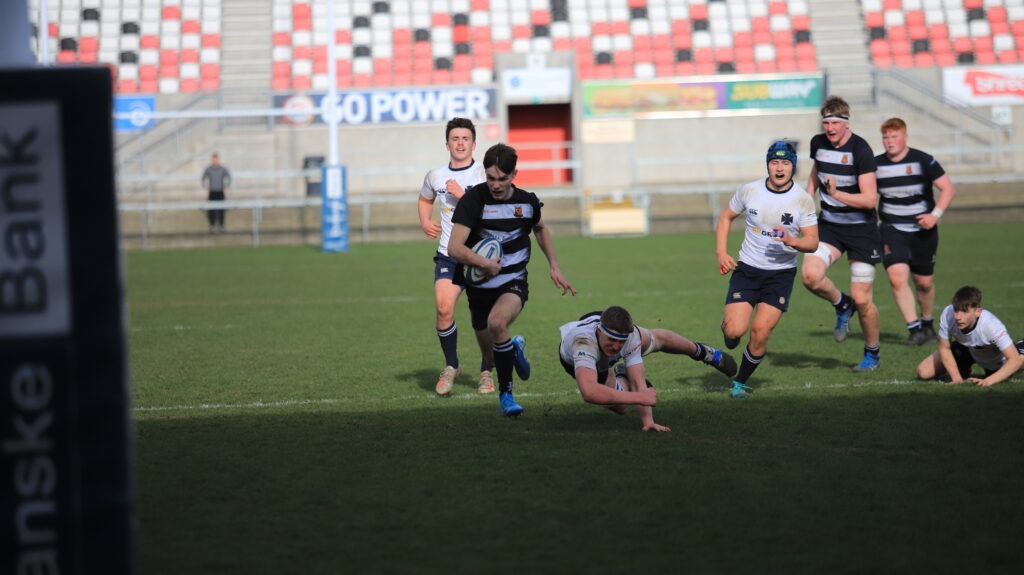 The coaching structure through the year groups was designed to develop continuity and progression. The work to prepare the players was now at a professional level, with not only high level pitch and video analysis sessions orchestrated by Derek Suffern (Director of Rugby) but also quality gym sessions coached by Tom Finn our S&C Coach. The addition of Ben Best, our Sports Psychologist and forwards coaches Kyle and Zack McCall meant no stone was left unturned in the quest for The Schools’ Cup.