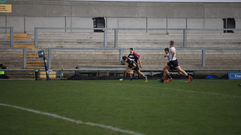 However, after a prolonged attack from MCB, centre Callum Davidson spotted an opportunity during a period of advantage to make a fantastic cross-field kick to Callum Doherty on the right wing who went over for their first try. Davidson’s conversion attempt drifted just to the right of the posts.