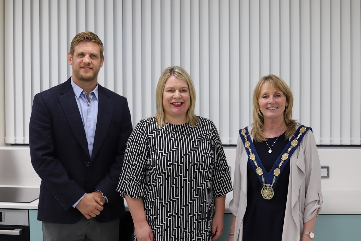 Any idea what was happening in Lisburn on the 4th October forty years ago? Sir Peter Froggatt, Vice-Chancellor of Queen’s University, was the honoured guest who officially opened what was then called the “new building” in Clonevin Park. The official programme from the opening records the cost of the building project as £1.5 million. Forty years later to the very day, Wallace’s former pupil Irish and Ulster rugby legend Chris Henry opened the new wing which forms the core of the School Enhancement project; costing £3.5 million, the School Enhancement Project has imaginatively transformed the landscape of Wallace, future-proofing the needs of a twenty first century school and ensuring that all staff and pupils are under the one roof. Mr Noel Gilpin, the Principal who oversaw the move from the Antrim Road to the iconic building in Clonevin Park, was described after his death by Dr James Kincade CBE (former Headmaster of Methodist College) as “small of stature but large of vision” and the inspirational development of the school’s sporting facilities can be seen as the fulfilment of a forty year old vision. The current Board of Governors and the Trustees of the school have made wise use of funds invested following the school’s last major building project; twenty- five years ago the Sixth Form Centre was built and significant amendments to the school’s pitches/sports facilities were planned. The memorable opening of the “smurf turf” (the school’s astro turf hockey pitch) in 2014 brought the school closer to attaining the vision which has now culminated in the finest of Strength and Conditioning suites. Designed with assistance from Ulster Rugby the facility is state-of-the-art and contains four power racks with custom laser cut branding with the Wallace High School logo. The area contains a free weights area with weight-lifting platforms, a blue astro-turf track (we like smurf turf!) for conditioning and warm-ups, plate loaded resistance machines and cardio equipment. We also have new changing rooms, new showers and even the novelty of hairdryers! Ever watched The Great British Bake-Off? If you are among its millions of fans you will have seen an oven designed to provide ease of access from a wheelchair; we are delighted to have disability access to one cooker and sink in each of the three classrooms. The floor-plan of the Nutrition and Food Science Department is generous as the bright, airy classrooms can accommodate up to twenty four pupils and each classroom has its own neighbouring multi-purpose classroom. Pupils have been enthusiastic about the tasteful colour schemes in the classrooms and the air-conditioning was much appreciated in the long hot days of summer. The Old Girls’ Association furnished the school’s first ever Home Economics classroom and prior to evolving into the Past Pupils’ Association the ladies suggested they would make a contribution to the new department; Miss Wallace (Head of Department) was delighted to suggest new cups for GCSE and A level prize-winners. The former Art Department had open plan classrooms so having your own four walls and a door is a veritable novelty for some teachers. Situated on the top floor of the new wing, the Art facility has three Art rooms, an MIA room, a workshop, an ICT suite and a Sixth form annex. There is also an impressive display area currently exhibiting GCSE, AS and A2 fashion pieces. The Technology Department, the final element of the SEP to be completed, has gained to quote Head of Department Mr Alan Monteith, a “fantastic CAD/CAM suite.”  Once fully equipped the room will lave the latest CNC router, laser cutter and 3D printers to produce the most sophisticated of projects. Technology is a popular subject at GCSE and A level so the aim was to reduce the “bottle-neck” around project development as pupils often had to wait for access to the router and laser cutter. Guests at the official opening enjoyed refreshments, musical entertainment by Julie Piggott and Andrew Li and tours of the SEP ably led by the Senior Prefect Team. The honour of officially opening the SEP fell to Chris Henry, the first Honorary President of the Past Pupils’ Association. Paying tribute to the influence of the school, its teachers and the vision of the Trustees and Governors Chris encouraged past pupils to engage with the school through practical support for the current school family. Speaking after the event Wallace Principal Mrs Deborah O’Hare observed: “Tonight was a night of celebration and an opportunity to formally place on record the thanks of the wider Wallace community to the many, many people who have helped to create facilities which will safeguard our students’ opportunities both now and in years to come. We owe a great debt to our architects Dominic Carson and Ciaran Murray and to the main contractors Martin and Hamilton who have delivered this project in an exemplary fashion. I am delighted by the opportunities this School Enhancement Project represents for our pupils, both present and future and equally delighted for the staff involved who have gained such inspiring work environments. Our Head of Maintenance Mr Colin McCutcheon has been tireless in his attention to detail throughout what have been for him long days and months. Thanks are also due to the trustees and Governors for their commitment, enthusiasm and vision. I also want to record my thanks to Chris Henry both for his presence this evening and his willingness to be involved with the Past Pupils’ Association. Chris is a great role model for all Wallace pupils, whether they are interested in sport or not, and we look forward to seeing the association flourish in the days and years to come. Finally, our thanks to the director of Lisburn Museum and his staff who have granted us the great privilege of allowing Sir Richard and lady Wallace a night out with the Wallace family.”