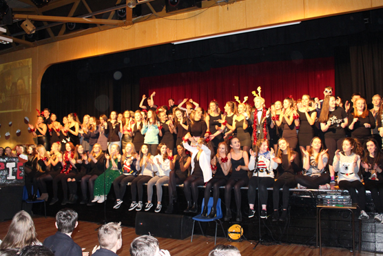 Tiny Life and Ovarian Cancer were the two beneficiaries of Xmas Pie, a venerable Wallace tradition which features music, dancing and sketches featuring familiar school personalities. Not to be outdone the staff offered their own pantomime Tangled; as befits a story centred around Rapunzel’s luxuriant locks. There were a few dodgy wigs with Miss Pascoe’s blue beehive being especially memorable! Mrs Karen Brett (Head of Health and Social Care) who supported the students in preparing for Christmas Pie said of the event: