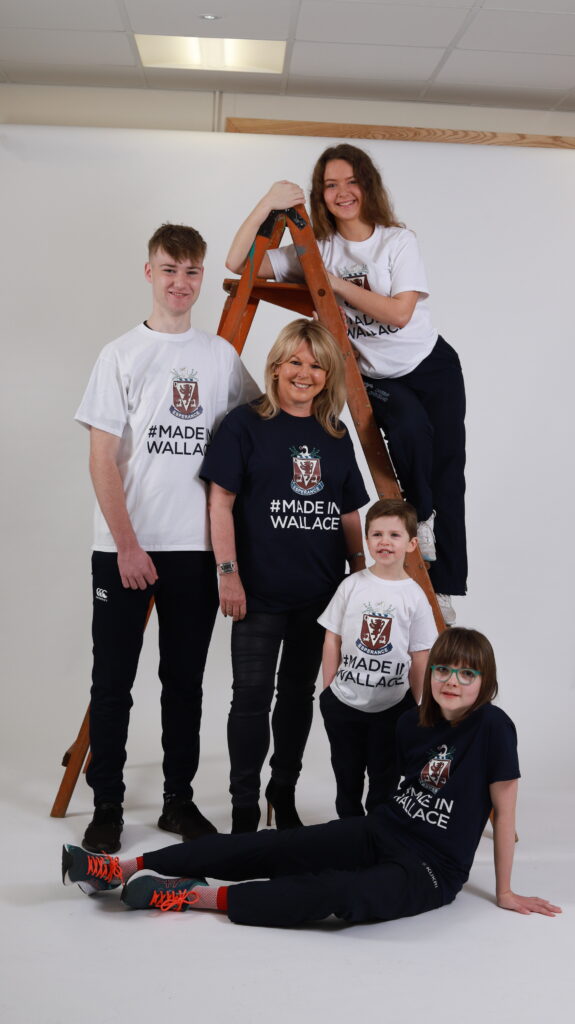 Our 2022 Prospectus introduced a new theme #MadeInWallace which will celebrate the achievements of present and past pupils and our cover shot reflected the concepts of family, modernity and tradition which are at the very heart of Wallace life. Wearing specially designed tee shirts featuring our school crest and the #MadeInWallace our cover stars represented different generations of Wallace life. Our former pupil and current Chair of the Board of Governors, Mrs Sandra McCabe, looked every inch a rock star whilst Head Boy Ewan Patterson and Head Girl Sophie Hinds showed pre-Prep and Prep pupils Seb Palmer and Libby Jordan how bright the future can be. A big thank you to our ICT technician Mr David Finney who was responsible for the photography and to former member of our Board of Governors, Mr Robert Hood, who has been our prospectus designer for over a decade.