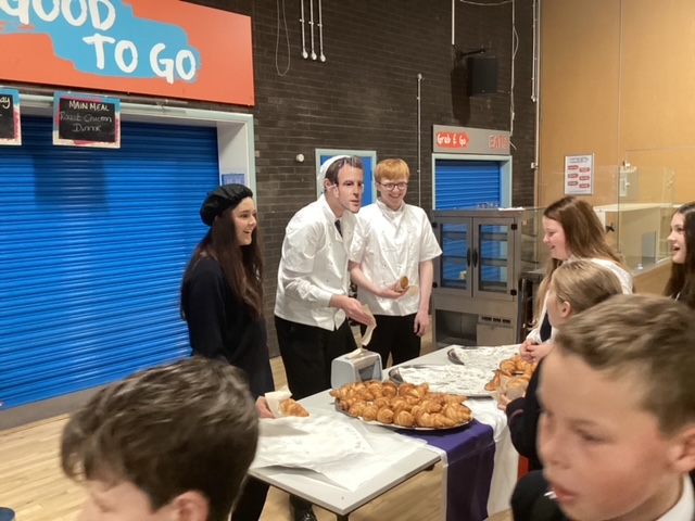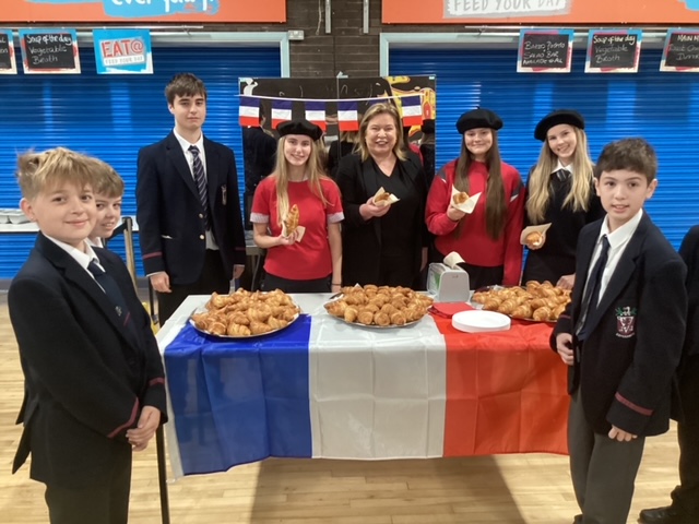 For Year 8 pupils, the celebrations kicked off with a delightful French breakfast, where they had the chance to indulge in French croissants and orange juice (jus d’orange). Alongside this culinary treat, students took part in French-themed spot quizzes, testing their knowledge of the language and culture. The event also featured a fun French photo booth, where students took pictures with French props, making it a memorable start to their week of European exploration.