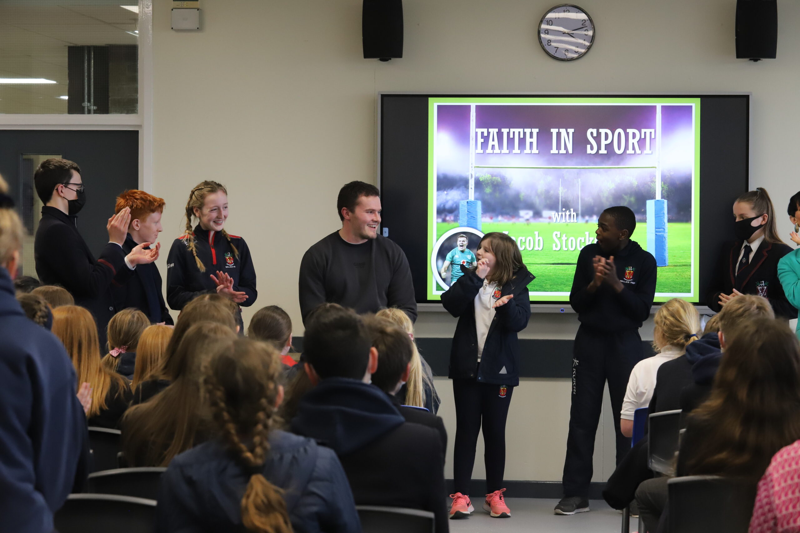 A capacity crowd appeared to hear former pupil and Irish rugby star Jacob Stockdale talk about how his Christian faith impacts his life. To the shock of the teachers (and perhaps even Jacob Stockdale himself!) we realised that Jacob had left Wallace before the current Year 14 arrived.