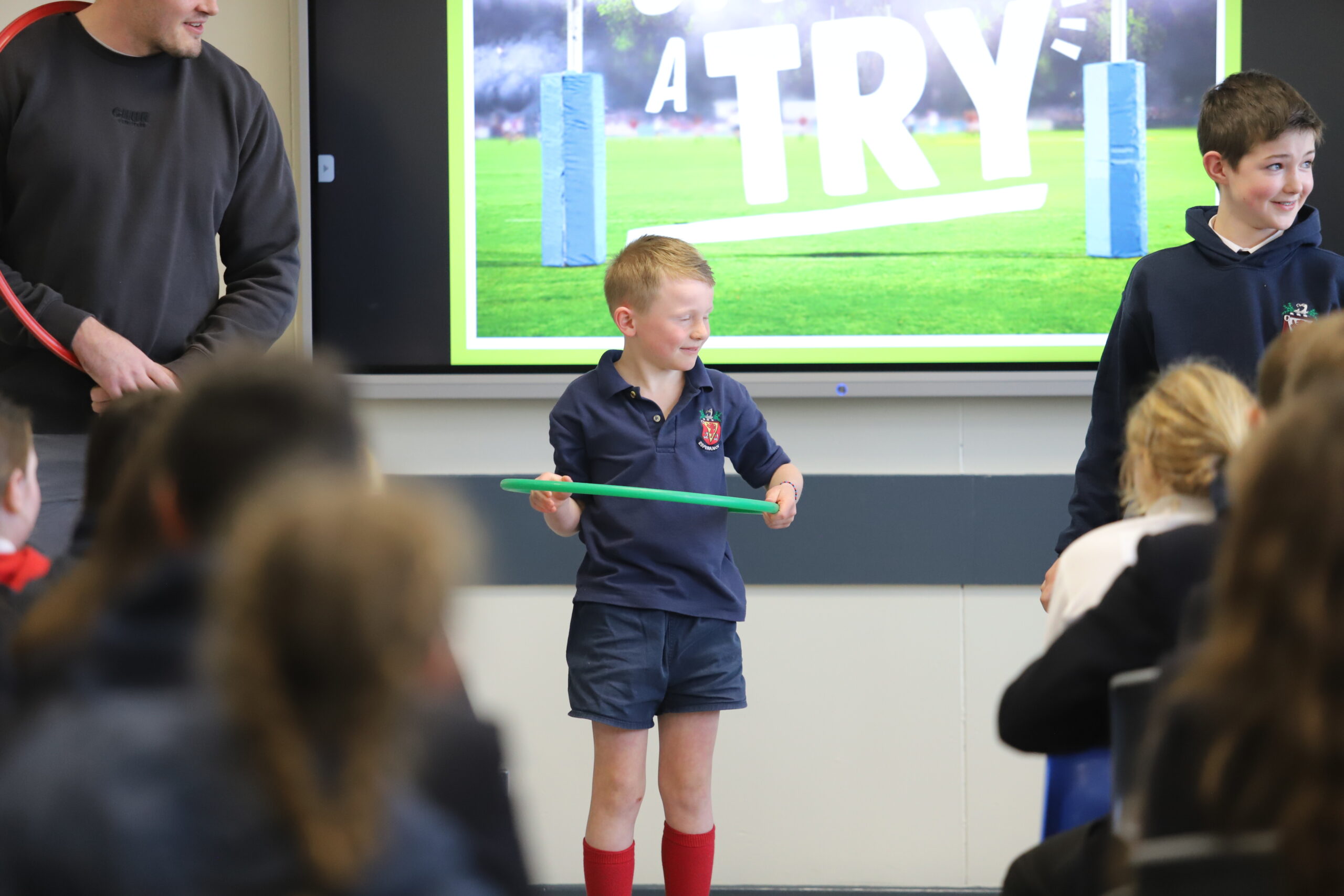 These revelations were followed up by some sporting challenges with table tennis bats and hula hoops; Jacob triumphed in the former but one of our Prep pupils, Harvey, won the latter very convincingly! Jacob and Deputy Head Boy Matthew Halliday participated in the cunningly devised build a tower with a cucumber while eating Jacob’s Crackers (couldn’t make it up!) with a highly competitive Jacob a clear winner.