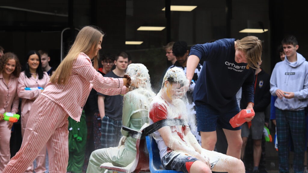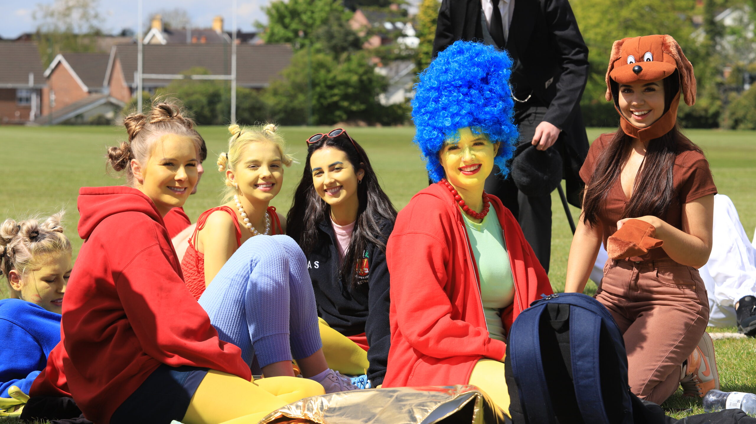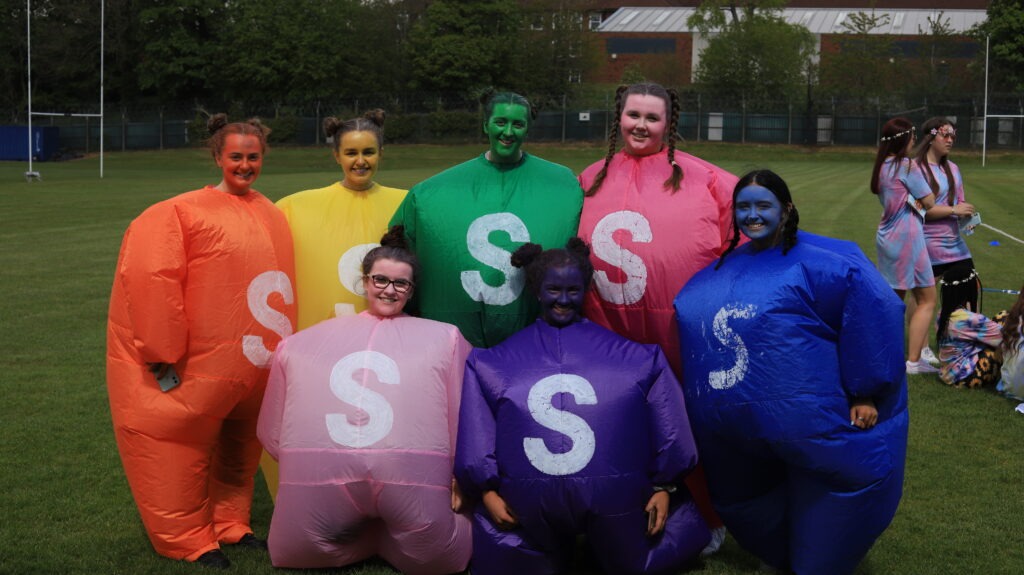 The class of 2021 could be forgiven for thinking they’ve had a disappointing two years but at their recent farewell to school events they demonstrated the creativity, humour and resilience which have become their hallmarks. Following a few busy weeks at school which saw them uncomplainingly complete a series of assessments they finished the year in a very colourful fashion! Traditionally Y14 pupils abandon their uniforms for a few days to enjoy the comfort of their PJs ( familiar garb for the last year!) and themed days; the class of 2021 really raised the bar for future groups! To the delight of younger pupils and the staff were met with a bag of skittles ( eat your heart out, tellytubbies) the cast of Scooby-do, flower-power hippies, super- heroes and so many, many more. They were a joy to behold!