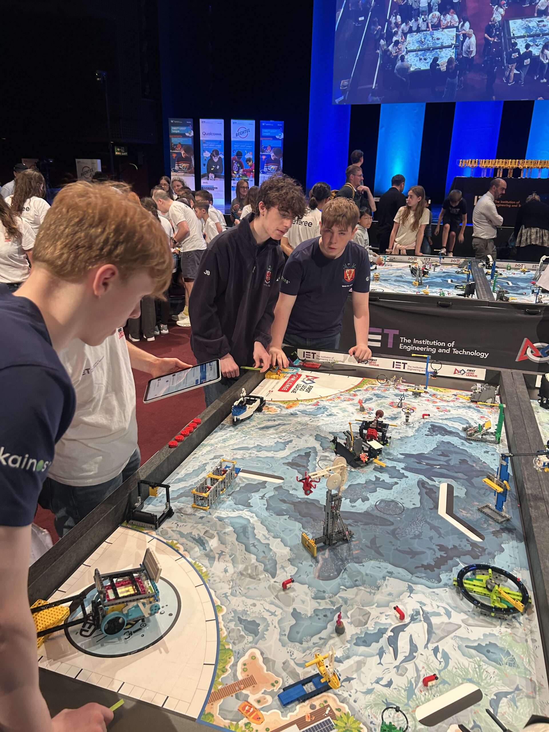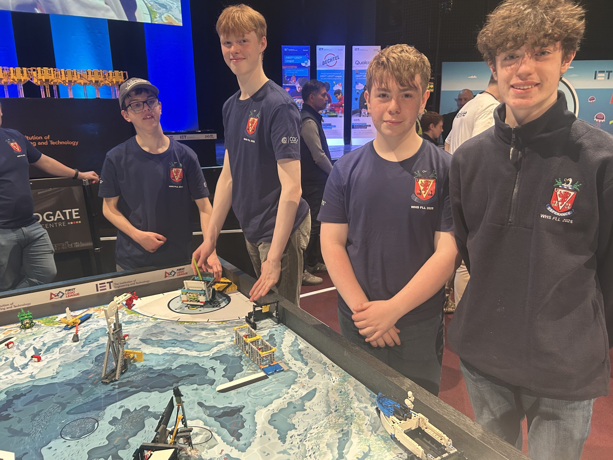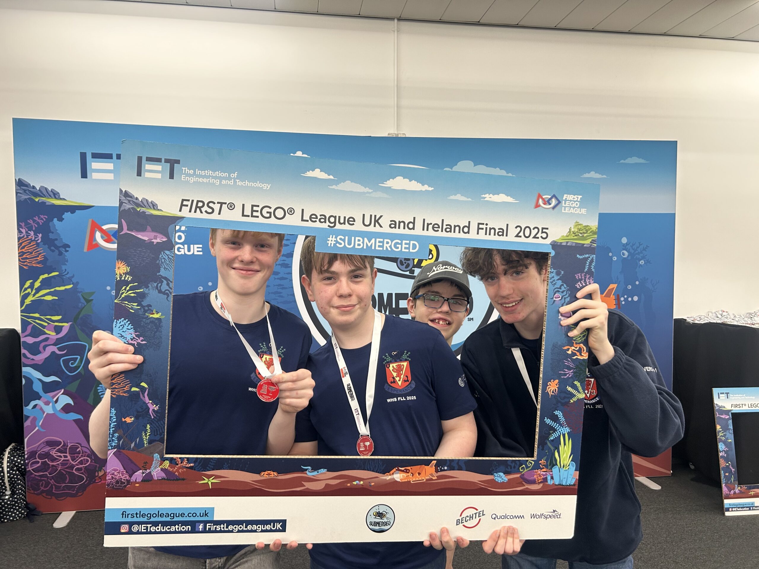 From the 2nd to the 4th of May 2025, a team of enthusiastic and innovative Year 11 pupils—Ethan, James, Bailey and Aaron—travelled to Harrogate to take part in the FIRST LEGO League UK National Finals. They were accompanied and supported by Mr Gibson and Ms Hendy, who have overseen the team’s development throughout the year.