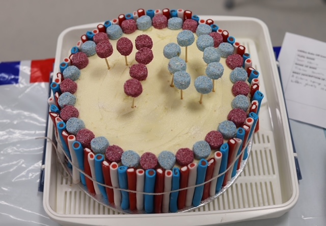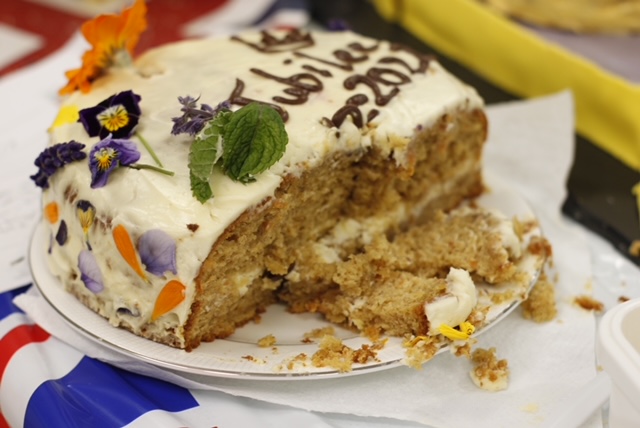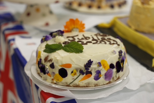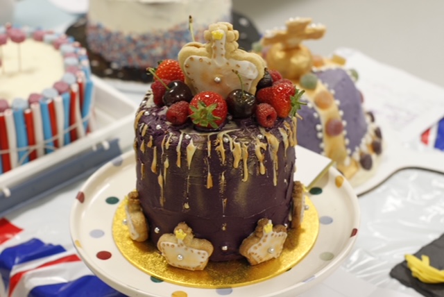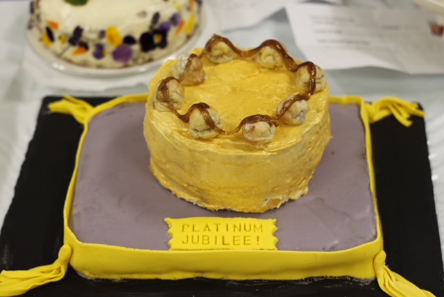 Entries were varied in nature as many tasters practically swooned over the lightness of the Union Jack pavlova (blueberries and raspberries played a prominent part) whilst smiling at the regularity with which Her Majesty’s favourite dogs provided inspiration. Iconic elements of Queen Elizabeth’s reign were well to the fore as we saw crowns and corgis, flags and flowers, layered sponges in red, white and blue and, in honour of an earlier great Queen, Victoria sponges. We saw delightful cupcakes, delicately iced German biscuits and cakes which were almost architectural in their ambitious design. Following an open invitation to taste and view, a steady stream of visitors meandered to the Nutrition and Food Department to admire the treats on offer and express wonderment that the judges could actually reach decisions!