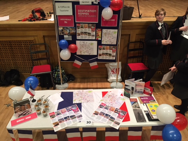 The Wallace team decided to create a Tourist Office stand for the French city of Rennes as this is the home city of Emeline, Wallace’s French Assistant. Emeline proved to be a wonderful source of information about Rennes as her enthusiasm for her native city shone through her conversation. The Wallace team members were delighted that Emeline was able to provide some authentic resources for them as this added to the realism of their stall.