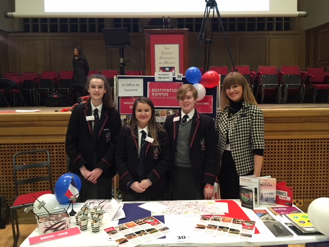 The competition took place on Monday 5th February in the splendid surroundings of the Whitla Hall at Queen’s University Belfast. The teams had preparation time to set up their stalls and the pupils were then visited by several judges. Team members were assessed on their level of French, the content and presentation of their stall and their customer service skills. After the judging the teams were given a guided tour of the University Campus before attending a talk by Benoît Le Dévédec from the Institut Français. The speaker highlighted the general benefits of learning French and subsequently addressed its relevance for employability.