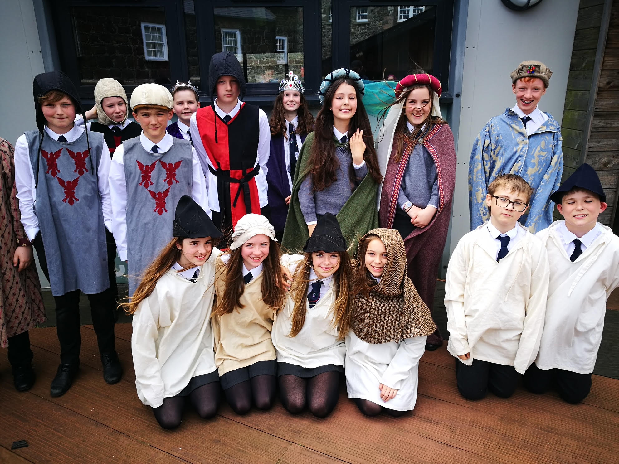 Reality did not disappoint and there was considerable excitement as the castle loomed into view in its dominant position overlooking Belfast Lough. Each class set enjoyed the experience of seeing the various tiers of the feudal system illustrated by their peers donning “status appropriate” costumes provided by the castle’s education department staff. Peasants, knights, lords, ladies and even royalty…we saw them all. Our tour guide provided an excellent commentary which reinforced much of the classroom based learning and vocabulary about the feudal system and the construction of castles but the real pleasure of such a trip lies in such joys as the “trip step” (now signposted for health and safety! ), the “terrifying” spiral staircases and the models of such delicacies as a swan and a pig’s head at the banqueting table! The origin of the phrase “the wrong end of the stick” brought shudders as the pupils imagined grasping a sponge at the end of a stick covered in…faeces!!! Toilet etiquette apart, the pupils also heard fascinating facts about medieval weapons and the impact of the guns fired in times past from the castle’s ramparts on nearby windows.