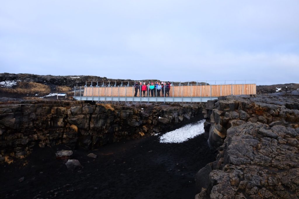 The third day was spent taking in the sights of the Reykjanes peninsula. After failing to spot much wildlife the previous day, the group was delighted to discover that a seal had come to say hello at one of Iceland’s most famous and wealthiest churches -StrandakirkjaThe next stop was the Krysuvik geothermal area, where a strong smell of rotten eggs greeted the group prior to seeing anything with their eyes! Some time was spent driving through textured lava fields before arriving at the “Bridge Between the Continents”. Here, the pupils were able to stand between the American and Eurasian plates, all while surrounded by the breath-taking scenery of the Reykjanes peninsula.