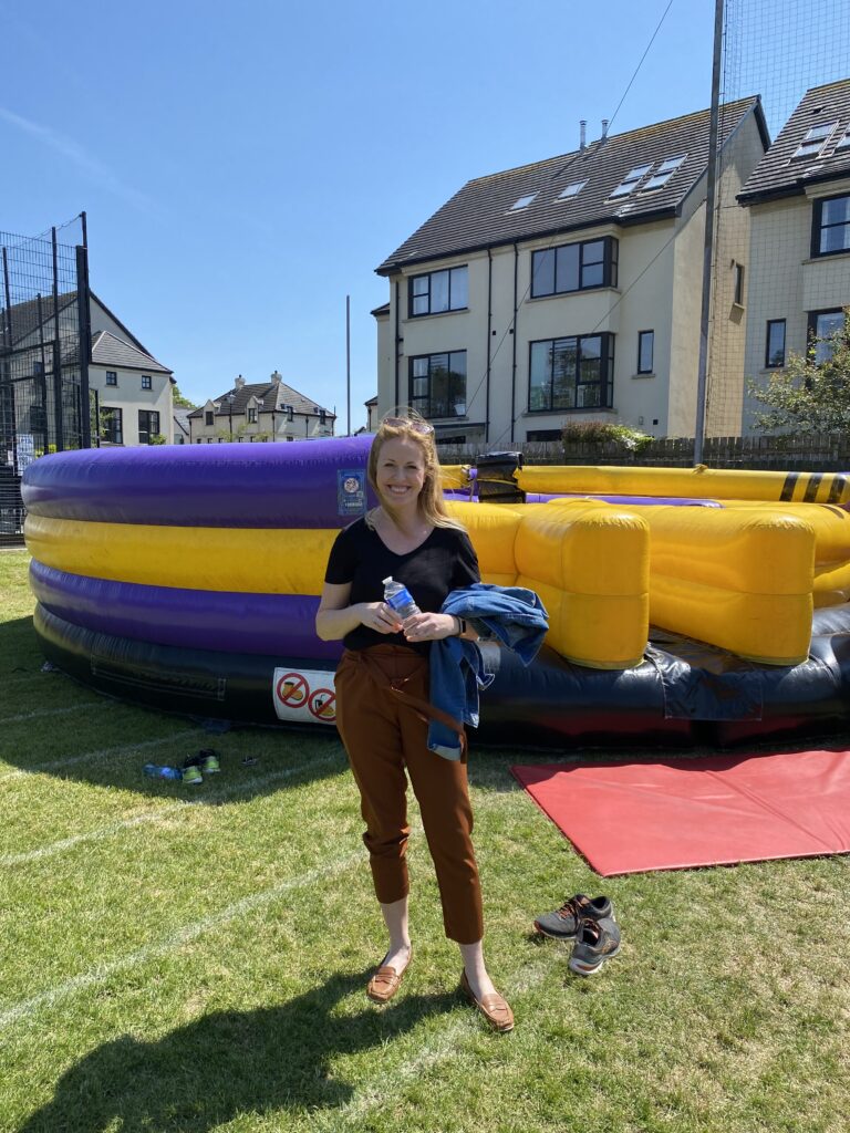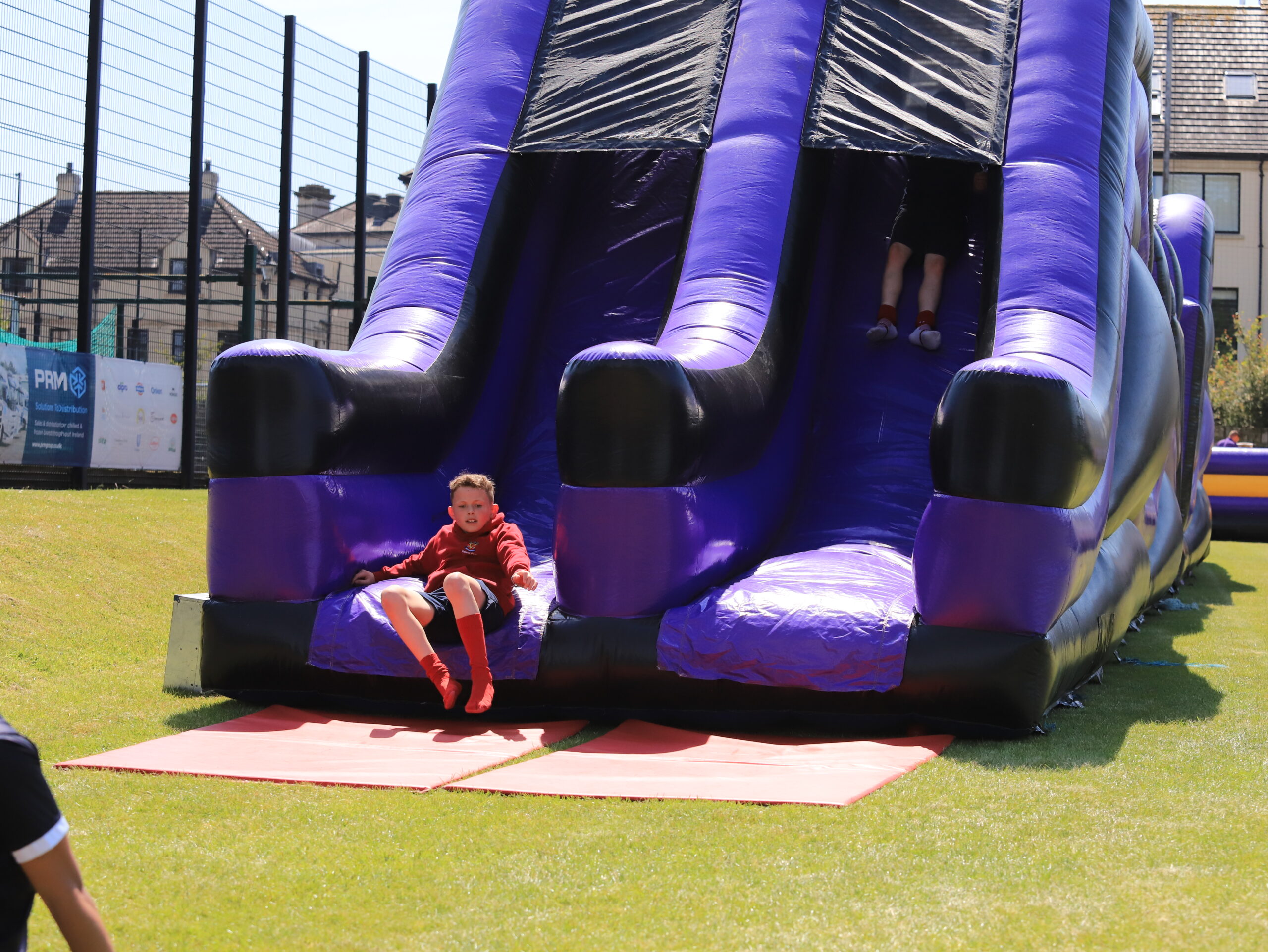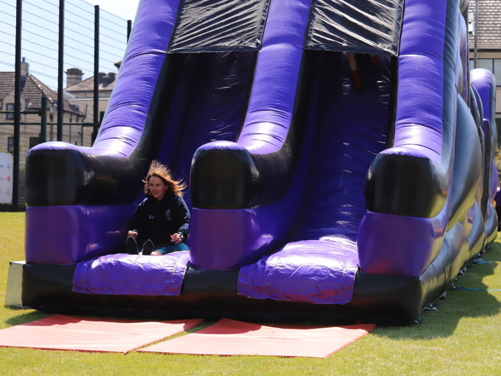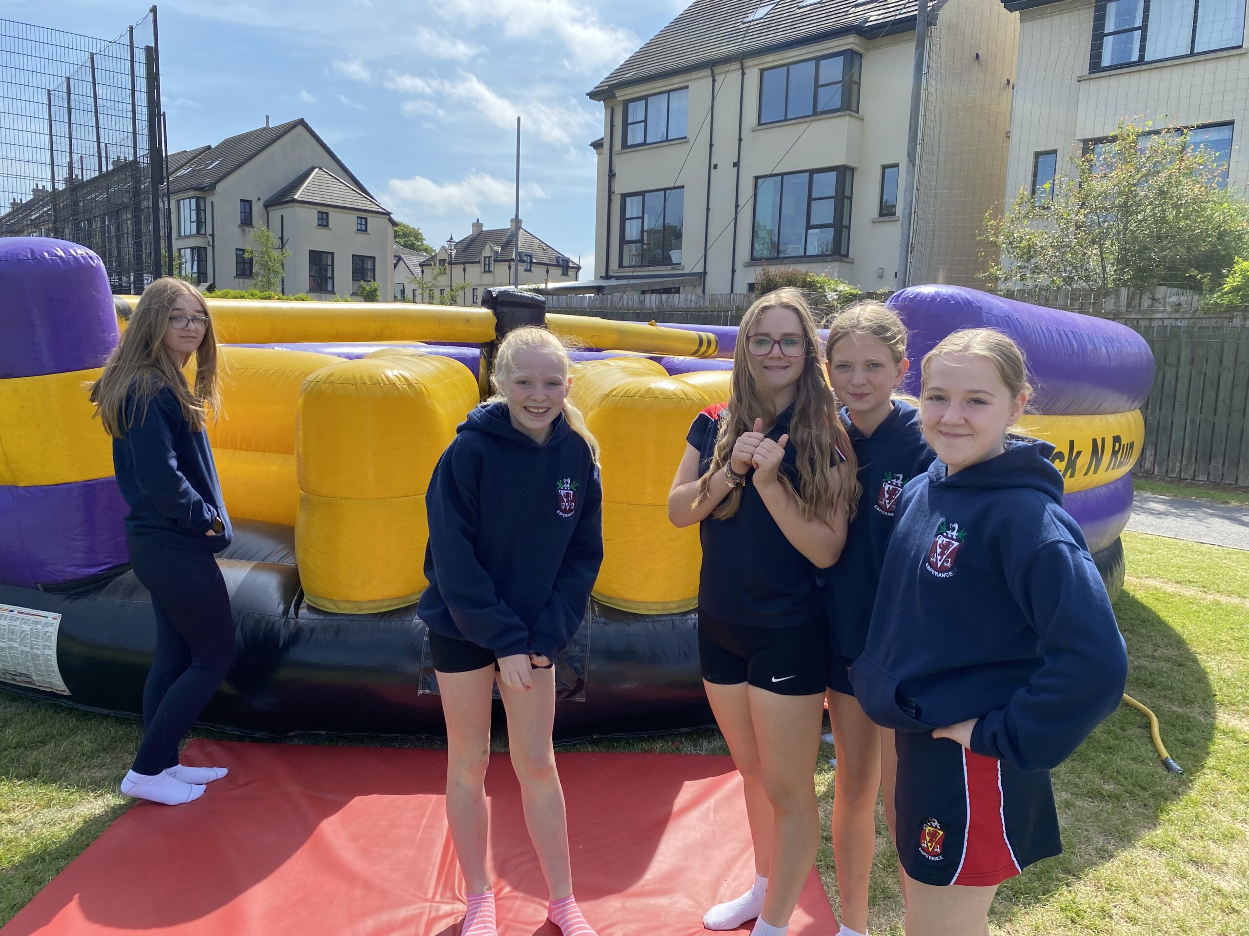 The assault course was 129 feet by 15 feet and was an enclosed inflatable which ended with slides. Two pupils were able to race each other and indeed a few staff couldn’t resist the chance to have a go; Mrs Schumann faced off with Mr Hylands whilst Mrs Richardson roundly defeated a pupil from 8Y. We will spare the pupil’s blushes and not name him! For two sets it was a day of sheer excitement as not only did they enjoy the inflatables challenge they also visited Carrickfergus Castle later in the day.