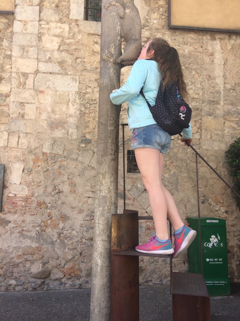 Following on from our recent trip to Cordoba, the Erasmus+ programme resumed from the 8th to the 12th of May, as eight Wallace pupils travelled to Sant Gregori! This is a little town near Girona in Cataluña in the north east of Spain and again our courageous pupils were accommodated with local families. As stated this was the second of our study exchange visits to Spain. As part of our Erasmus+ funded project, a central aim was to share and develop our knowledge and experience of using the iPad in teaching and learning in collaboration with our three partner schools: Institut Vall de Llémena (Cataluña), Zalima (Córdoba) and Athénée Léonie de Waha (Liège, Belgium.) After a bright and early start (and a long journey!) we were welcomed to the Institut Vall de Llémena by its Principal, Neus. Fantastically, three Year 11 and five Year 10 Wallace pupils joined their new foreign friends, throwing themselves with great gusto into the ice breaker sessions organised by the PE department in our Catalán partner school! As with several of the activities and workshops planned for the remainder of the week, the groups were made up of a mix of pupils from all four schools ensuring that everyone got to know each other really quickly. It didn’t take long for the Wallace group to relax, particularly when they had met their partners and subsequently our pupils headed off to their host families for their first experience of Catalán family life! A truly brilliant week followed which included a series of workshops on apps such as Edpuzzle, PicCollage, ThingLink and Spark Video, to name but a few, as well as attendance at a variety of classes in our host school. The pupils from Vall de Llémena also organised a fascinating, interactive guided tour of the beautiful city of Girona. (This included hearing of the local custom of kissing the rear end of the statue of a lioness to guarantee a return to this ancient city!) The Wallace pupils and accompanying staff extend a very heartfelt thanks to our wonderful host school that organised a highly engaging series of workshops and activities to develop our knowledge of apps. This has superbly helped both Wallace staff and pupils on how to get the most out of the iPad in teaching and learning respectively. The pupils in particular wish to say “Muchísimas gracias” to their lovely host families, who looked after them so well during our stay in this beautiful part of Cataluña!