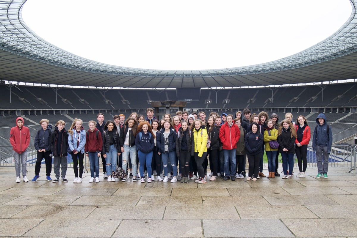 The Sports fans on the trip thoroughly enjoyed a guided tour of ‘Olympia Stadion’ on day two before a much more sombre visit to Sachsenhausen concentration camp. The historical reality of this visit was certainly hard to digest, before the group were lifted again with a visit to The ‘Fernsehturm’, Berlin’s TV Tower. This proved to be a big hit with our students as it offered spectacular views over the city, providing a great opportunity for some panoramic picutres! Other cultural and historical highlights of the five-day trip included poignant visits to the ‘Gedenkstätte Berliner Mauer’ which commemorates the division of Berlin by the Berlin Wall and the deaths that occurred there, the Stasi prison and the Jewish museum which will live long in our memories!