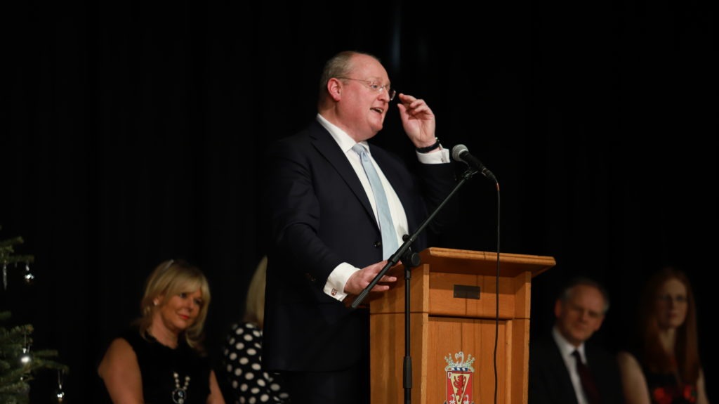 It was an afternoon which saw sectarianism in schools roundly condemned, Stormont’s absentees urged to get to work and Scrooge transformed to Santa with Oliver Heath starring as both iconic figures! Guest speaker, former pupil Stuart Deignan, described himself as “a moderately well-adjusted individual” and delivered a speech as witty as it was wise. Using his own quarter century of “Life after Wallace” as his source material Stuart (by way of tales of failed careers in Politics and Chemistry, meeting Presidents and searching for documents in skips) suggested three key lessons: firstly, mistakes shape you; secondly, you don’t regret adventures; finally, as Wallace pupils, step forward into the world with confidence! Noting the place Wallace had played in his own family’s history, Stuart also evoked the wider values of our distinguished philanthropic founder noting that a great part of Sir Richard’s success was the impact he made on others; he also endeared himself to the teaching staff by asserting “your education is the most important thing you possess” and “the education you’ve received at Wallace is world-class.”