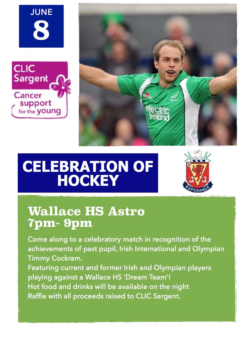 A Celebration of Hockey is scheduled for Friday 8 th June at Wallace’s now famous “smurf turf.” Former pupil Timmy Cockram’s amazing achievements as an international player and Olympian will be celebrated by an exciting encounter between a Wallace “dream team” featuring Timmy and current Irish international players Sean Murray and Matthew Nelson. The opposition? Local Olympian Jonny Bell will field a select team including his fellow Olympian Eugene Magee.
