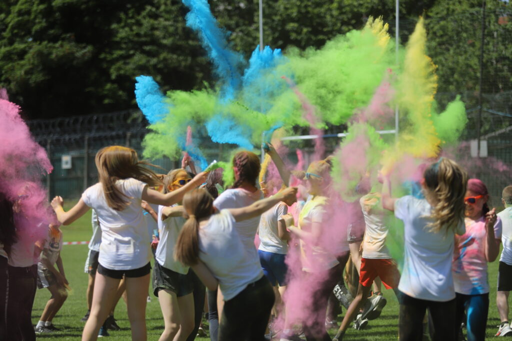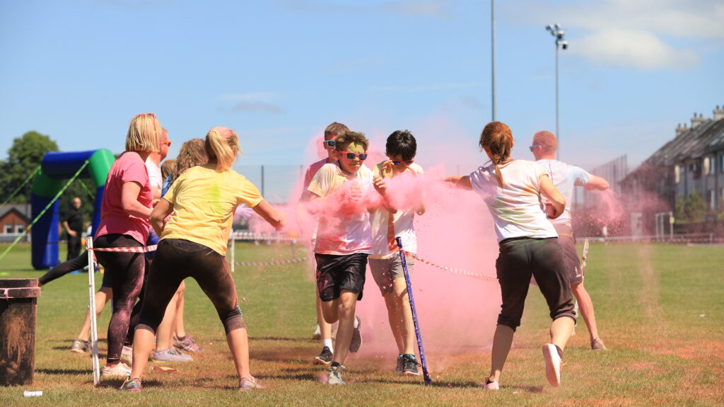 Determined to end our year on a public health compliant high we determined to reprise a triumph of several years ago…the Colour run! For the uninitiated this is an event which combines a great playlist, running, powder paint throwing, gaudy sunglasses, teachers bent on “rewarding” favourite pupils with extra paint over their hair and some Dad dancing as a climax.