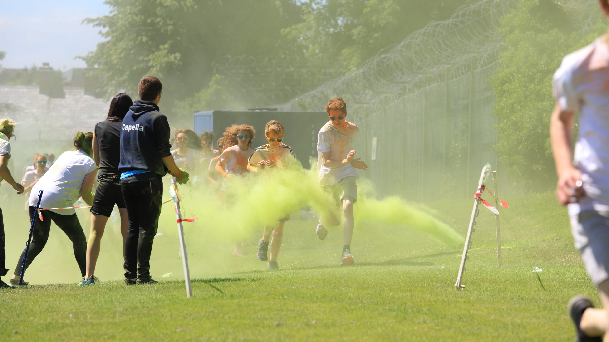Determined to end our year on a public health compliant high we determined to reprise a triumph of several years ago…the Colour run! For the uninitiated this is an event which combines a great playlist, running, powder paint throwing, gaudy sunglasses, teachers bent on “rewarding” favourite pupils with extra paint over their hair and some Dad dancing as a climax.