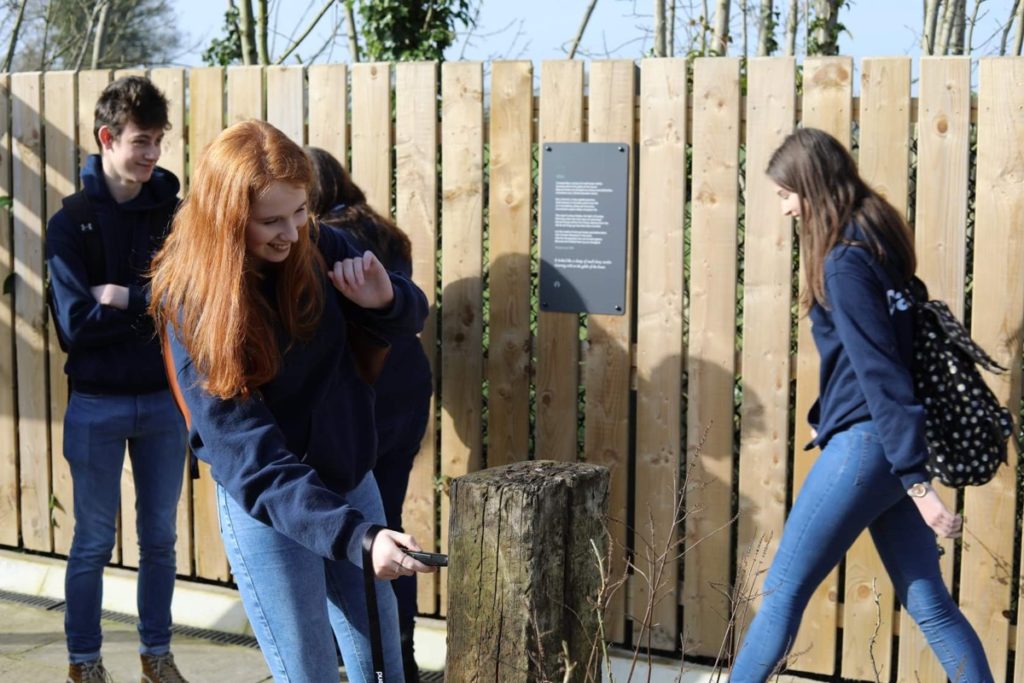 The now annual visit to Bellaghy saw glorious sunshine and a first sighting of a new addition to the Home Place, a sensory garden. The students were able to enjoy an unseasonably warm day and, thanks to the miracles of modern technology, listen to Heaney’s own voice reading a range of his most famous poems including The Forge which is celebrated in a particular area of the garden.   The mixture of the open air and Heaney’s distinctive accent brought a new dimension to the students’ experience and enjoyment of the poems as did the excellent exhibition tour. The Heaney Home Place prides itself upon the authenticity of its exhibition pieces as Heaney’s family, including his widow, have donated items to the centre and it also boasts a replica of his study. Interactive elements are cleverly mixed with more traditional displays of photographs and commentary both of Heaney’s family circle and the wider rural community; the dominant mood of the exhibition is undoubtedly celebratory and the genuine enthusiasm of the staff is infectious.