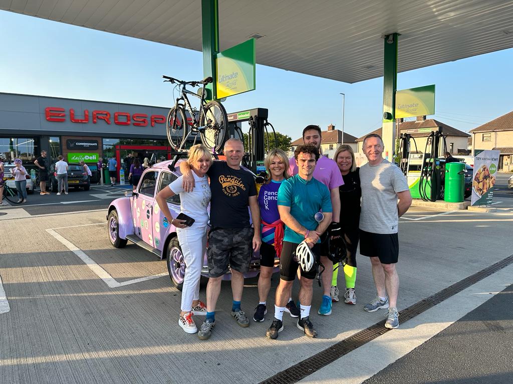 Having been liberally doused with champagne and warmly embraced by their proud family circles, Andrea and Cathy spoke emotionally of their motivations for this remarkable feat. The idea had been Paddy’s and the motivations were to spread awareness of the symptoms of pancreatic cancer, raise money for research and celebrate the lives of Paddy and Cathy’s school friend Natalie whose sixth anniversary poignantly fell at the weekend. Surrounded by their own Wallace tribes, the sisters were able to celebrate a remarkable feat which to date has raised about £74,500 of the £80,000 target.