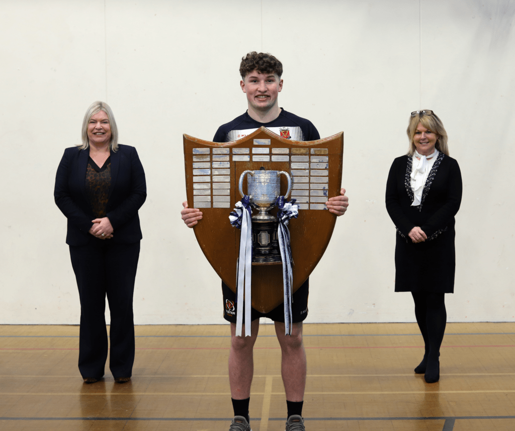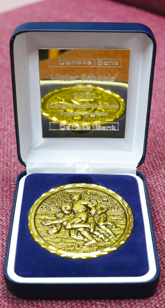Reuben, one of three squad members to have an Ulster Academy contract, addressed his team-mates thanking them for their “determination and hard work” and urged them to harness and channel the insights they had gained over their years of playing together. As his final duty as Captain, Reuben presented the historic silverware to Mrs O’Hare and Mrs Sandra McCabe, Chair of the Board of Governors and two gifts to the school which commemorate the victorious Schools’ Cup campaign.