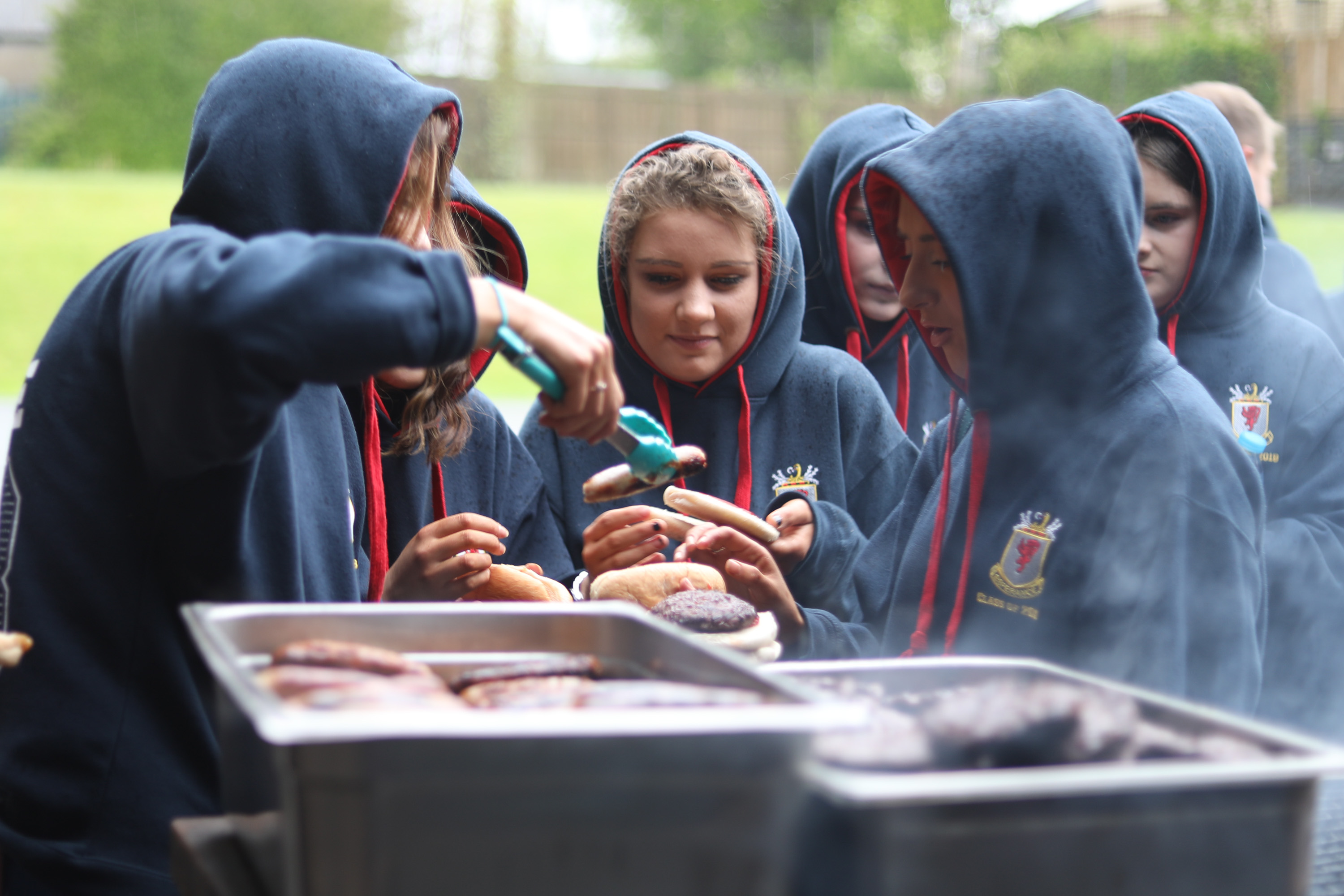 Formalities over the students moved to the Sports Hall (weather gods still scowling over the pitches) where they enjoyed a tasty BBQ and an afternoon of fun and relaxation, taking time to play on the bouncy castle and taking many a selfie to mark their last formal day in school.