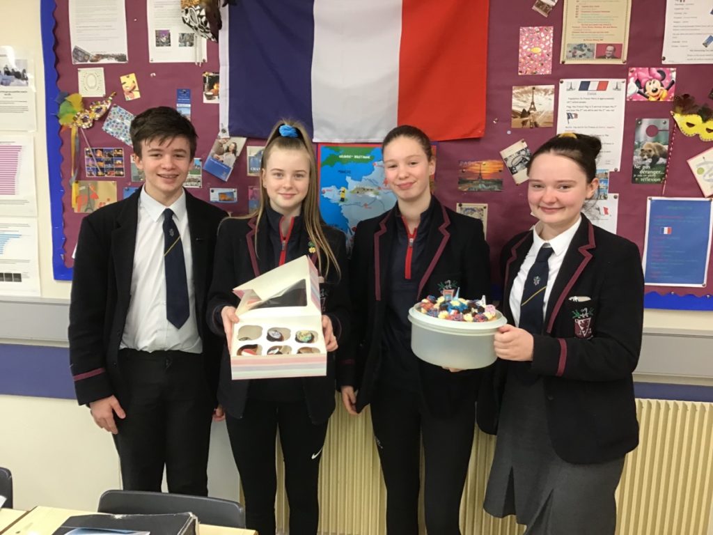 After careful consideration it was decided that ‘Cupcake Couture’ would represent Wallace at this year’s event, with team roles including Baker Caitlin Dunn, Product Sourcer  Josh Kamalarajah, Head of Advertising Katrina Mason and Project Manager Isaac McIlwrath. Ably supported by Paige Crookshanks, Aneisha Foyle, Molly Harper and Gheed Ownallah, the group met weekly to decide on their company logo, their advertisements, their business cards, their products, their product history, their prices and (of course!)  to practise their French.