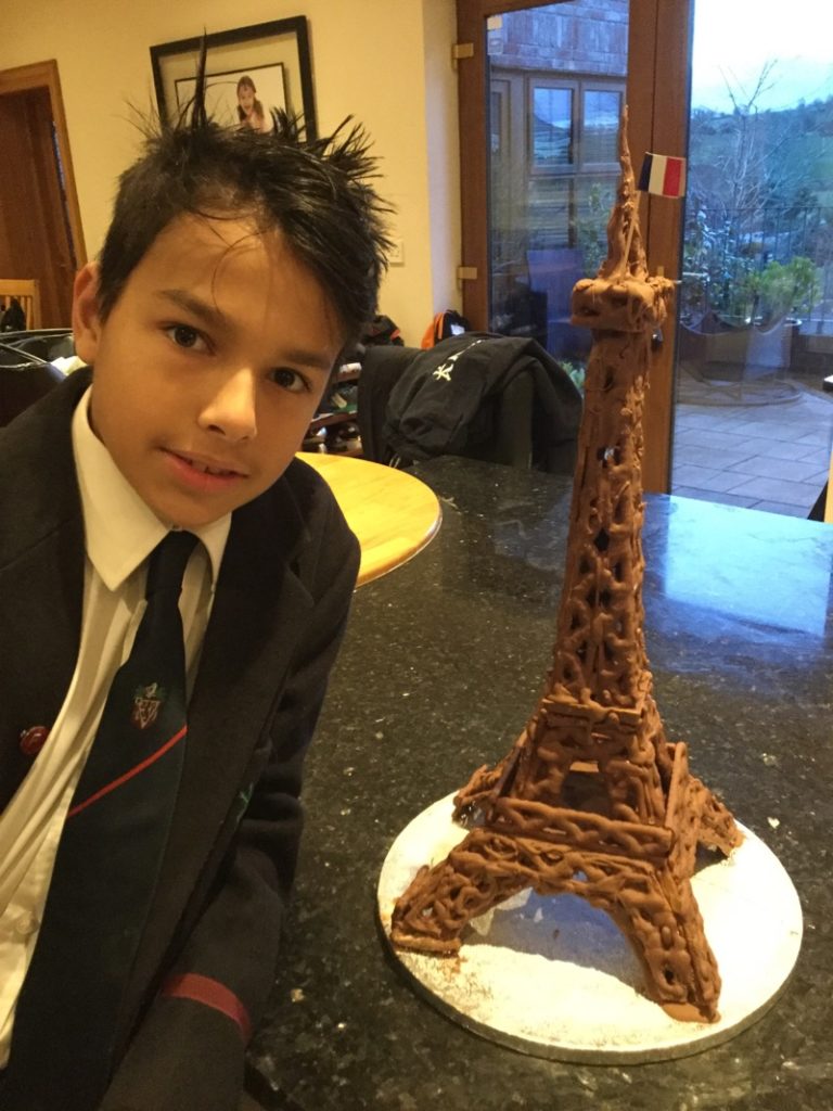 As well as producing luxury cupcakes with innovative French influenced  designs,  they also wanted to have a French themed cake and a chocolate ‘Tour Eiffel’ as their ‘pièce de résistance’. This was no mean feat and huge congratulations must go to Josh who spent five hours making the masterpiece.