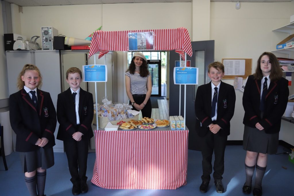 Year 8 pupils paid a visit to ‘la boulangerie de Wallace’ where they ordered croissants and ‘jus d’orange’ from Anaïs, our French Assistant from Lyon, who was ably assisted by Year 14 French pupils.