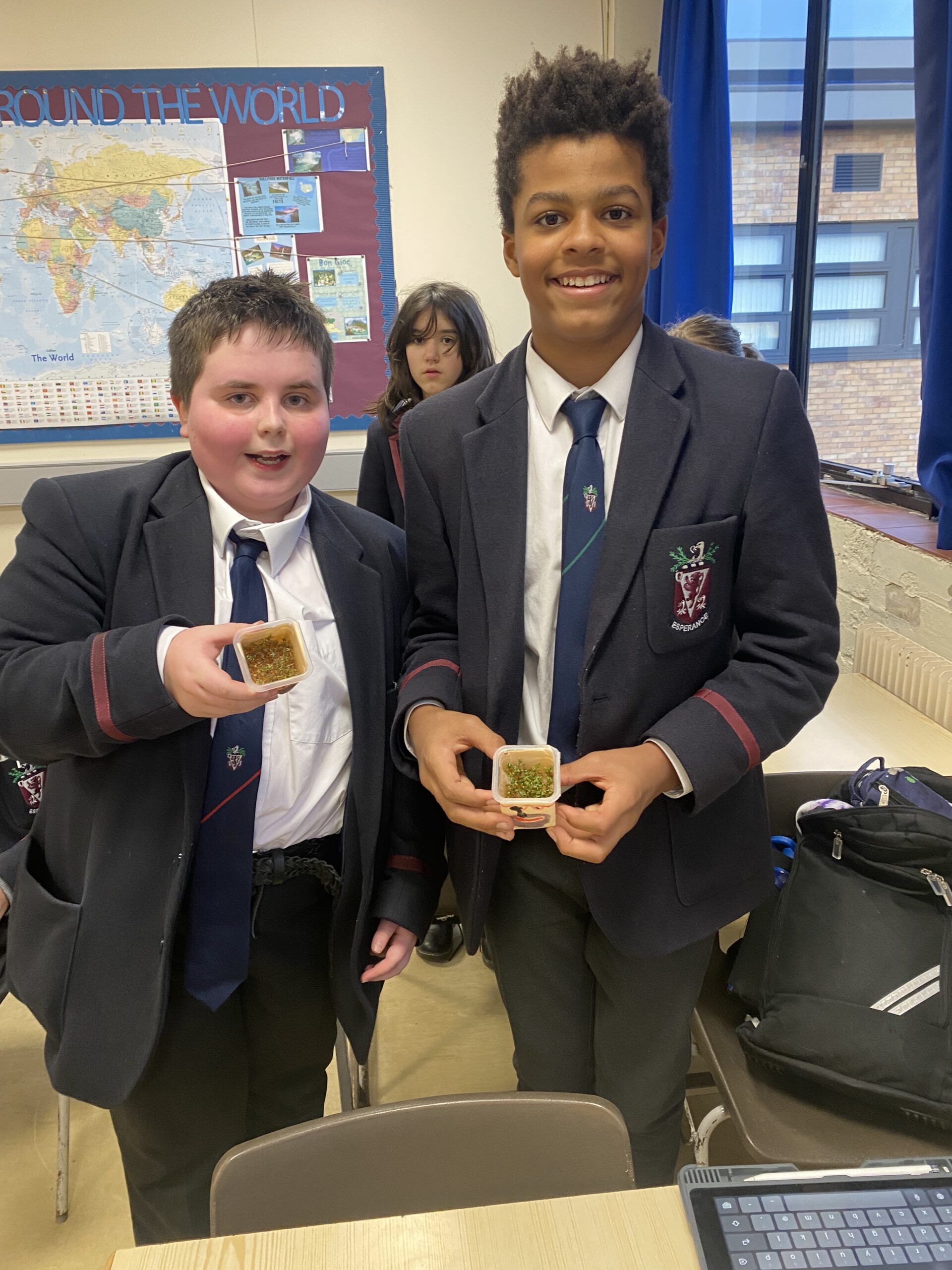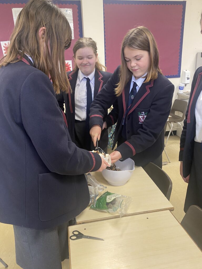 Wallace’s Eco Club under the leadership of Miss Judith Wilson is raising awareness in our school community. A group of enthusiastic pupils in Years 8 and 9 meet weekly to learn about environmental issues and to translate ideals into actions. Given that “making” is often a highly successful form of learning, the group has enjoyed a range of seasonal activities including the following: wreath making using leaves and re-cycled cereal boxes, bird food and fat balls, sustainable Christmas decorations, sustainable bird feeders and pancake making on Shrove Tuesday. The pancakes were made using fair trade ingredients and organic local produce from the Wilson family farm.