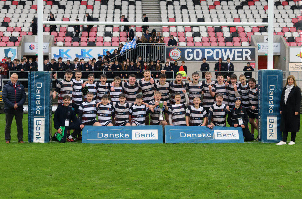 To the delight of a huge Wallace crowd our under 16 team became the second winners of the Danske Bank Schools’ U16 Cup, triumphing 12-0 over Campbell College, Belfast at the Kingspan Stadium. The weather was miserable but nothing was going to dampen the spirits of the Wallace spectators who saw their side take an early lead in the 18th minute of the game with a try scored by Daniel Macklin-Copeland. The try was converted by Quinn Armstrong ( who apparently had a huge family fan club in the stand as his personal cheerleaders) to consolidate Wallace’s lead.