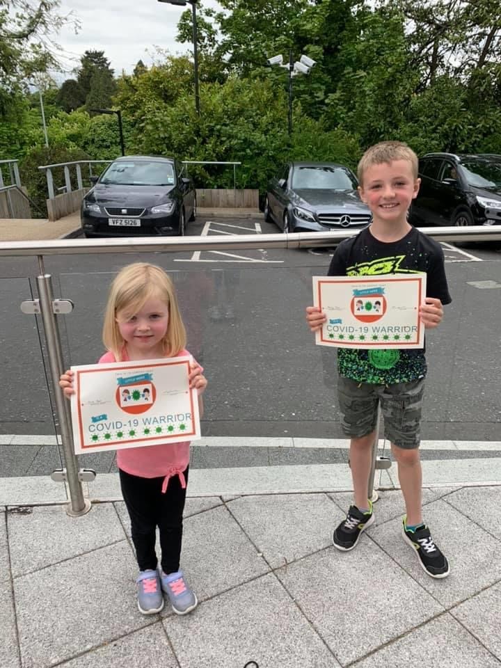 Harry and Evie are the children of former Wallace pupils Philip and Joanne who, as a physiotherapist and doctor, understand the crisis better than most. Justly proud mum Joanne shared her pride on social media noting: